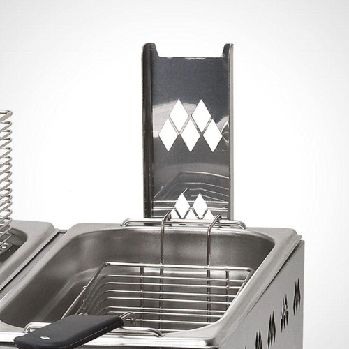 - Fácil de limpiar: sus cubetas extraíbles permiten lavarlas con facilidad. Además, es una freidora profesional construida en acero inoxidable, un material higiénico, sin grietas que puedan acumular suciedad, resistente a la corrosión y a los procesos de limpieza mas rigurosos.